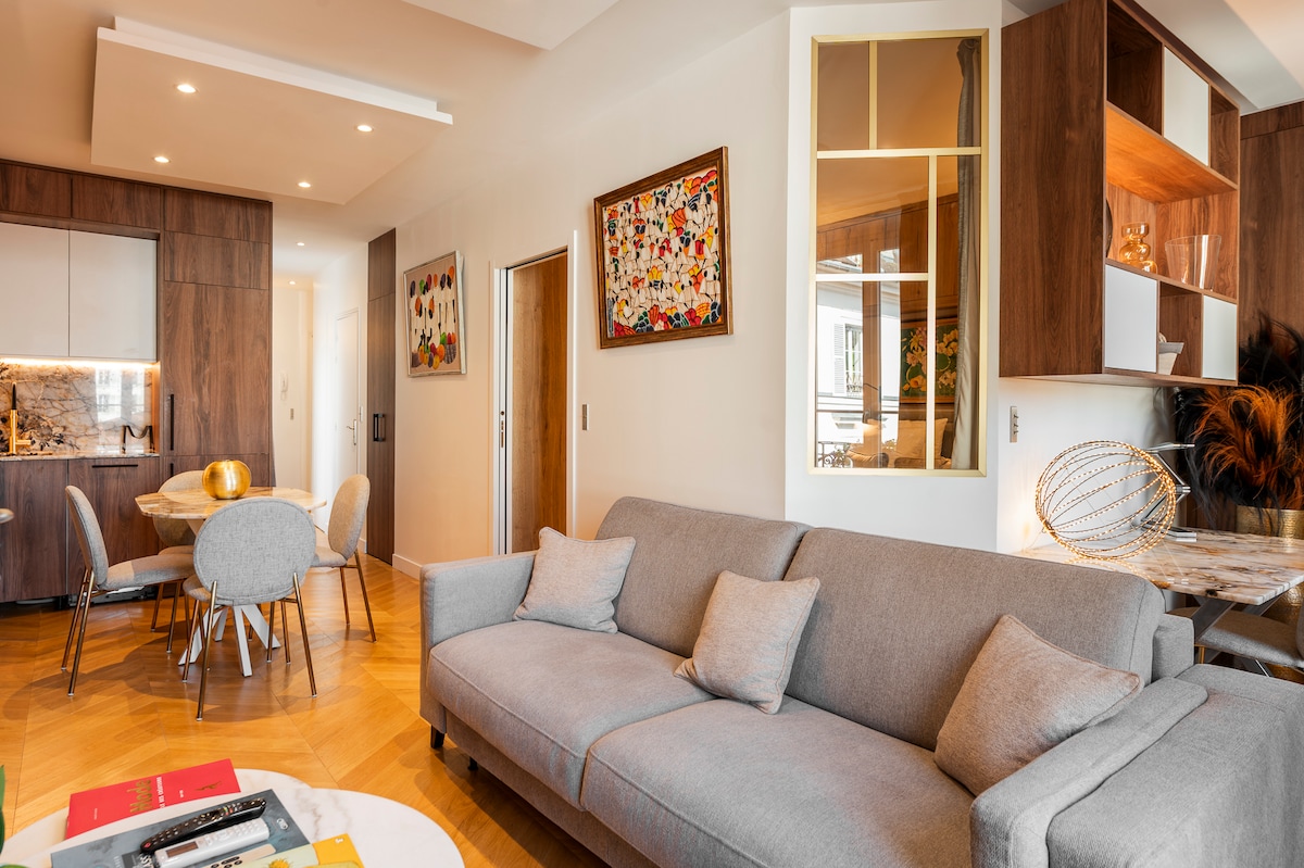 Treat yourself to a romantic and elegant Paris getaway in our Parisian apartment. A true haven of tranquility, it has been completely renovated with a modern and captivating decor and carefully chosen materials. Very well located, very easy to access and close to many bars, restaurants and historical monuments, this apartment is an ideal base from which to visit the city and experience the Parisian art of living.