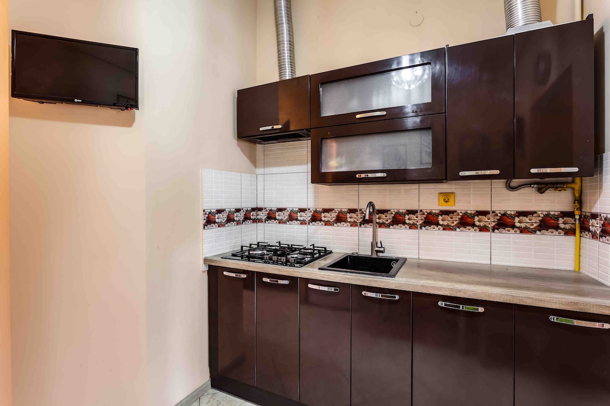 With Love in Lviv apartments are located in the very heart of the historic city. The apartment is located in an old 16th century building, a monument of architecture. Town hall, all architectural monuments, authentic restaurants are ten steps away from the apartment. The apartment has a spacious living room with leather furniture, a folding sofa with a comfortable mattress. The bedroom has a bed with an orthopedic mattress and wardrobe. Wooden kitchen with bar counter, fridge, stove with grill, kettle, all necessary utensils.