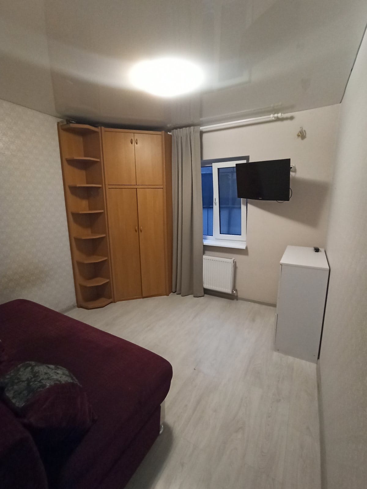 One bedroom apartment for daily rent in the very center of Yuzhny. The apartment consists of a spacious bedroom, kitchen, bathroom (separate) and a large loggia converted into an additional bedroom. There are all amenities for a comfortable stay: TV, Wi Fi, air conditioning,washing machine. The kitchen is equipped with a stove,oven, refrigerator, microwave, kettle and all necessary utensils. There is a modern children's playground. Free parking in the yard.