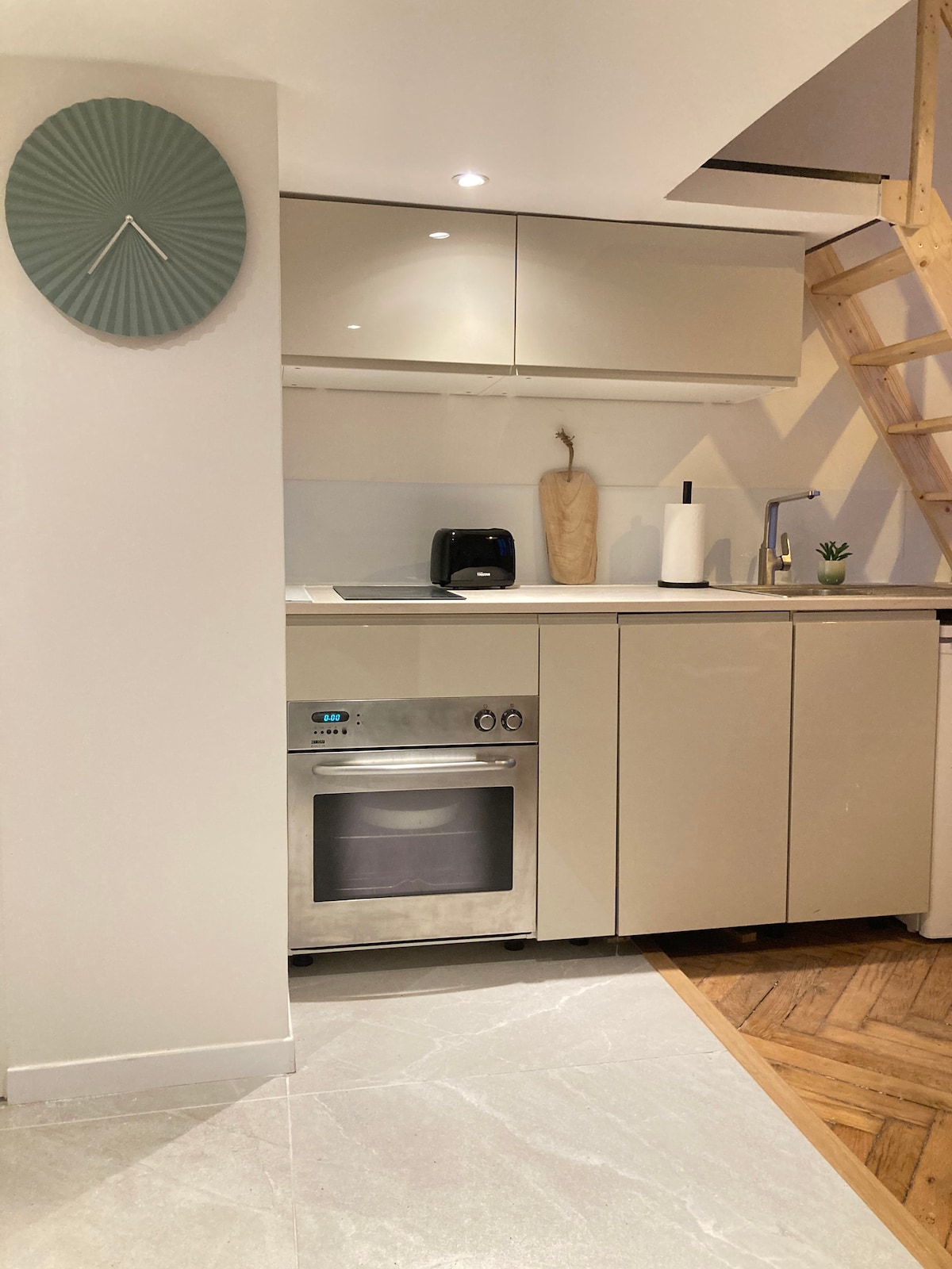 A compendium of charm. Quiet, located next to small shops, restaurants, 6 minutes from the metro and 4 min. of the Town Hall. Modern, cozy and peaceful comfort to spend warm moments. Renovated duplex, located on the 2nd floor. Pleasant for 2, 4 pers. possible (ideal family). On the night side, a bedr. on the mezzanine (height 1m75) with a 140*190 bed, and a 2-seater sofa bed 185*200 or 2 90*200 beds downstairs. SDD and separate toilets. Fiber WIFI, TV with 180 channels, Bluetooth speaker.