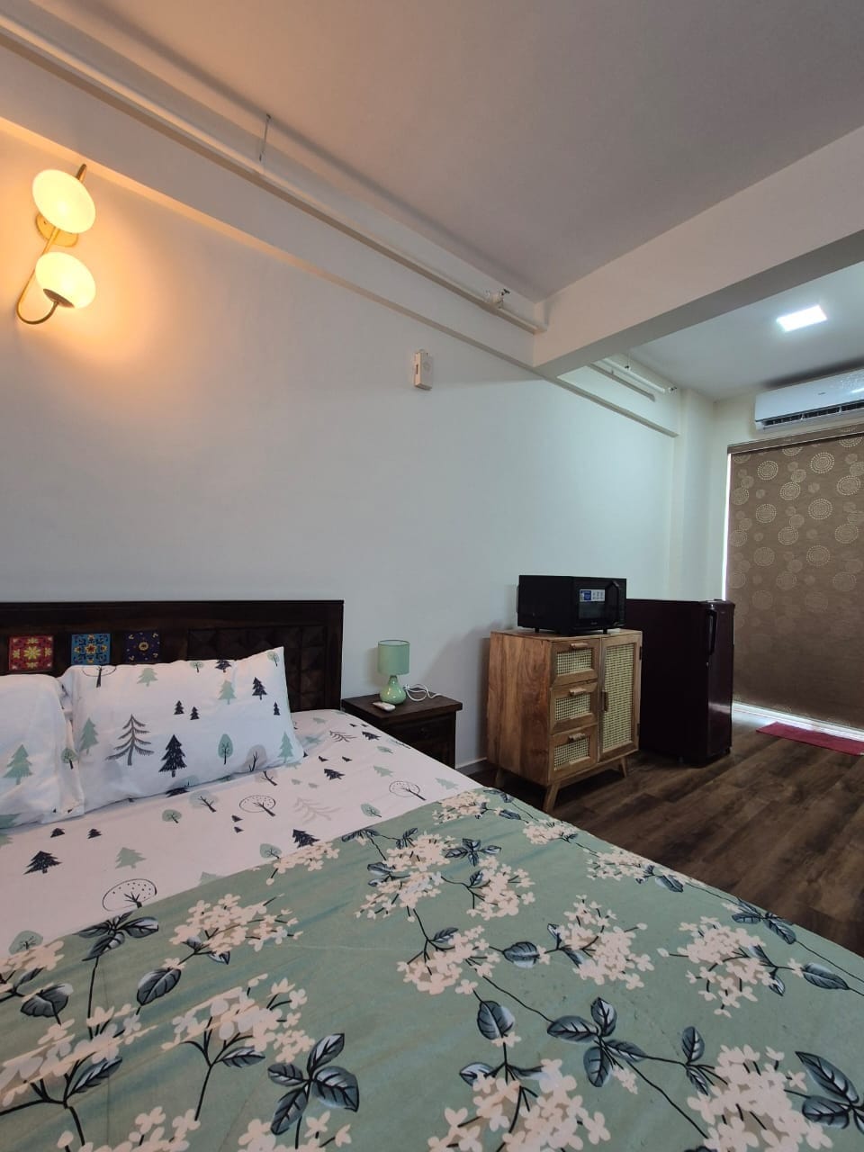 Your family will be close to everything when you stay at this newly launched, centrally located home. Thoughtfully designed for comfort and calm, the apartment features warm ambient lighting, simple interiors, and a cosy living space to unwind after a busy day. Step onto the private balcony overlooking the lush green forest around Amir Mahal—a rare, serene view in the heart of the city. Perfect for morning coffee or a quiet pause, while still minutes from key attractions, dining, and transport.