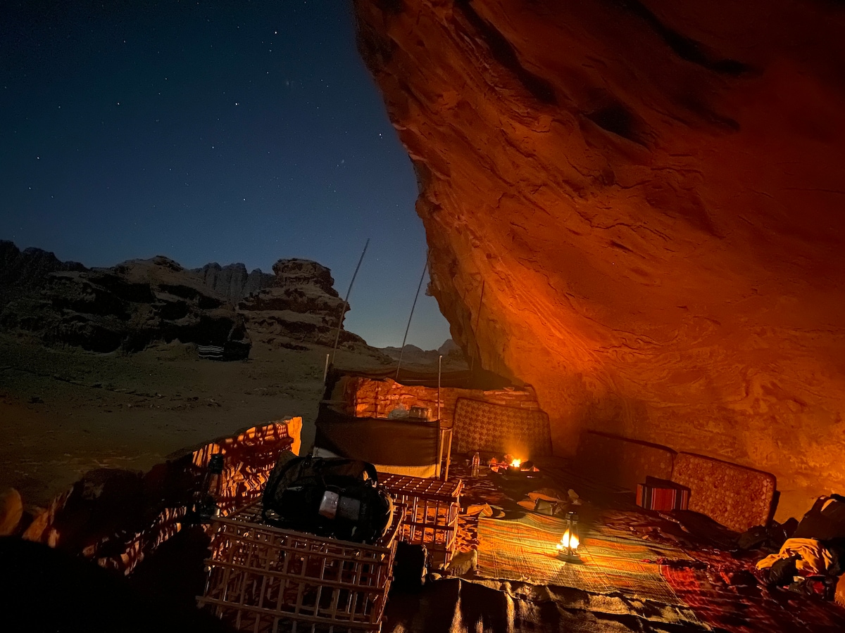 Experience Wadi Rum like never before! Stay in our unique cave camp, located 10 km deep inside the peaceful desert, far from the village and noise. Enjoy an authentic Bedouin atmosphere, stunning views, and quiet nights under the stars. Our camp is the perfect base for jeep tours, hiking, and camel rides. All meals and drinks are included for a relaxing and unforgettable stay.