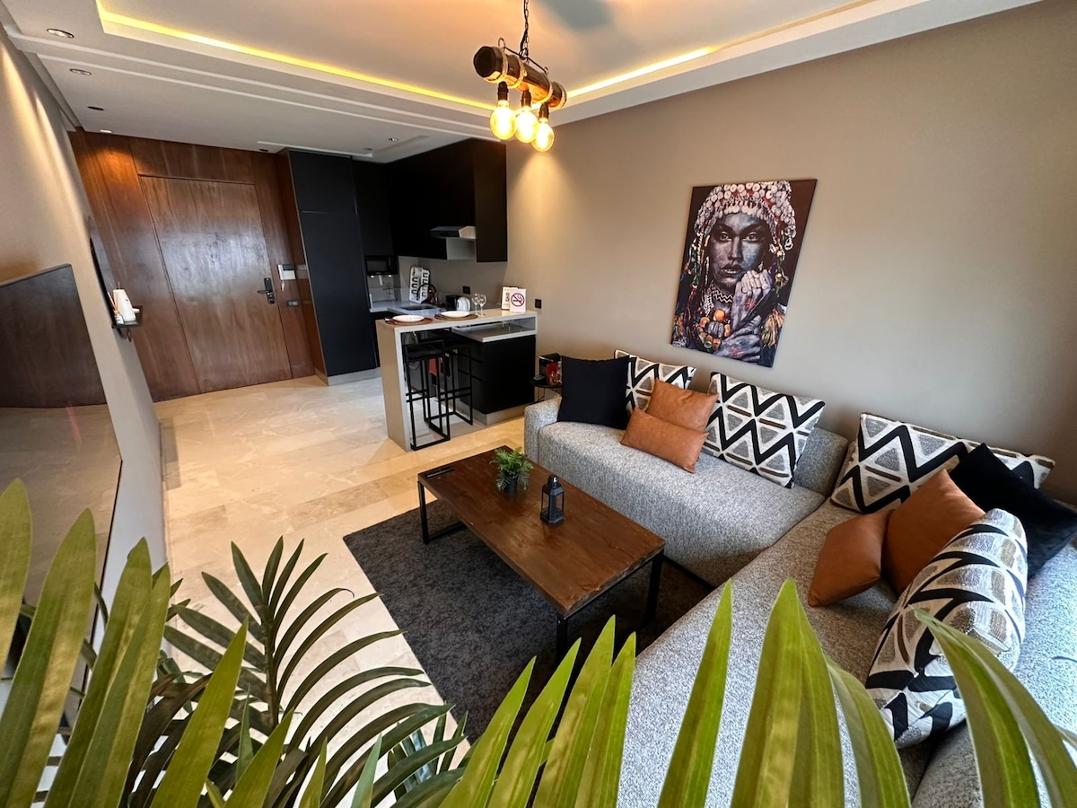 Unwind in our luxurious studio, where comfort meets convenience in one of Casablanca’s most desirable neighborhoods. Featuring elegant design, a private gym, and a spacious balcony—perfect for your morning coffee or enjoying breathtaking evening views. With top restaurants, shops, and must-see attractions just a short walk away, you'll have everything at your doorstep. Whether you're visiting for business or leisure, it's the ideal escape to relax and recharge.