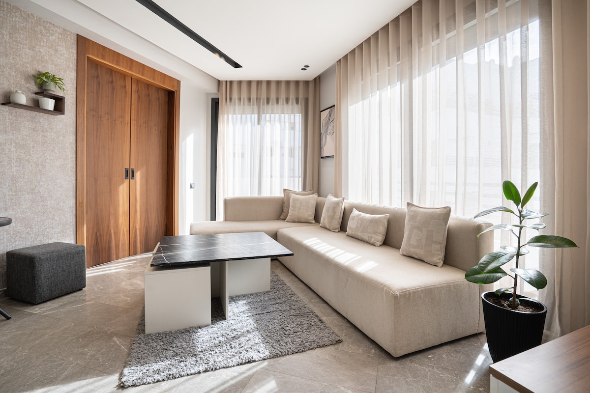 Experience the perfect blend of luxury and comfort in this stylish studio located in the heart of Casablanca. Ideal for both business travelers and vacationers, this modern space features a fully equipped kitchen, a dedicated workspace, and a private terrace for your morning coffee or evening relaxation. Unwind in the spacious living area with floor-to-ceiling windows that flood the space with natural light, or take advantage of the on-site gym to stay active during your stay.
