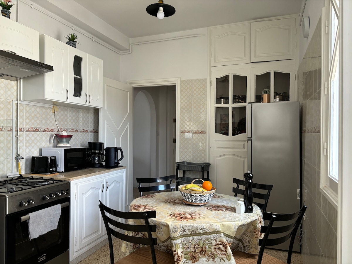 Cozy apartment ideal for couples. In the heart of the city of Monastir, cafes and restaurants nearby, close to the airport is about 15 minutes by car. You can also take the train for a dinar, and the train station is close to the apartment, about a 3-minute walk. There is also Ribat Monastir nearby, a 10-minute walk away, and the beach is about 15 minutes away. The apartment is on the second floor and there are no water cuts WELCOME 😊