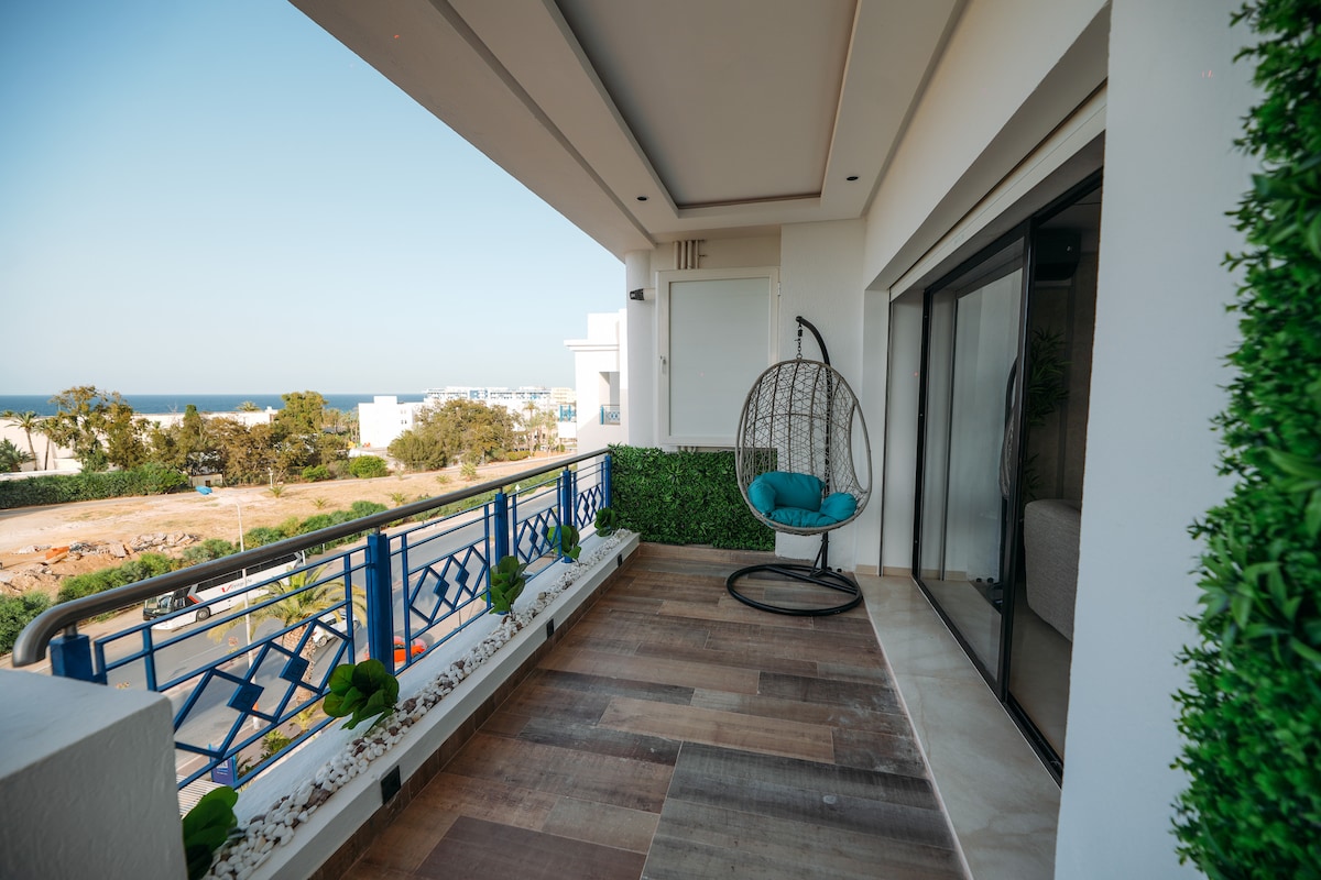 🏝 Located between Sousse and Monastir, in a luxury residence with swimming pool (just behind the garden, accessible in a few steps), 10 min walk from the beach. ✈️ Only 5 minutes from Monastir Airport and 2 minutes from Carthage Clinic. 🌿 Quiet and peaceful neighborhood, perfect for relaxing. 🚗 Car recommended to explore both cities freely.