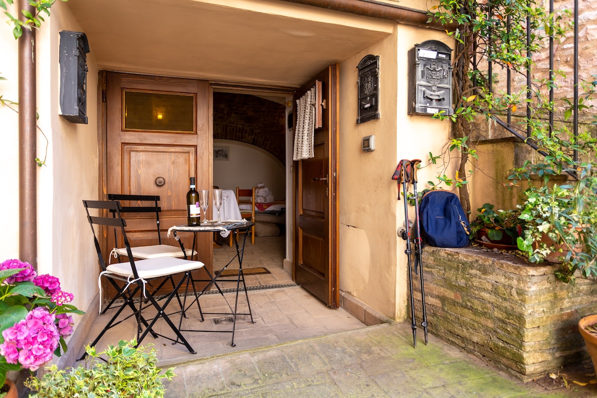 In a XII century building, the property, with a suggestive access, is valorized by a large, furnished terrace overlooking the wide valley facing Assisi, Spoleto, Bastia Umbra, Bevagna, Castel Ritaldi , Trevi, Montefalco and Perugia. My accommodation is suitable for couples, nature fans, families (max 2 children) and 'hairy' friends (pets). We are eco-friendly ... At Belvedere Electricity is 100% from renewable sources! :-)