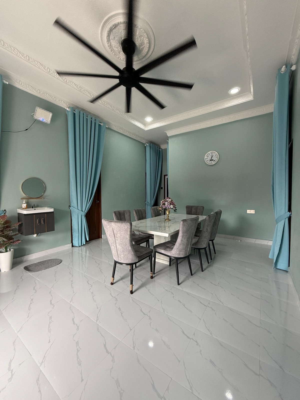 Cheap homestay with 3 bedrooms (one bedroom has air-conditioner), 2 bathrooms, living room, kitchen and free car park (has roof). It is located in a terraced residential area and near to many restaurants (local, western and asthaetic), grocery stores, supermarkets and interesting places. Also, food prices in this area are cheap and reasonable. And most importantly, our homestay price are among the cheapest. Welcome To Our Homestay.