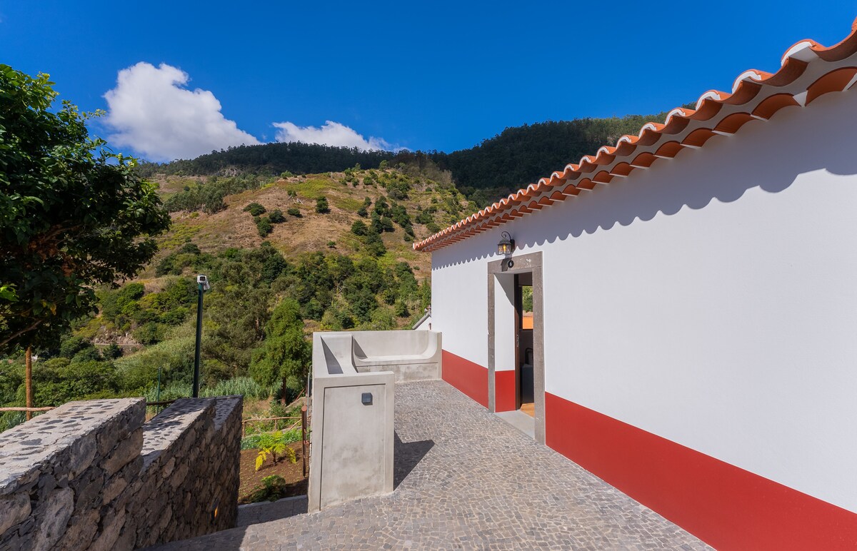 Detached house inside an Agritourism property called "Casas da Levada", with breakfast included in "do it your self" mode. From an old wine cellar, where the farm tools were kept, "Casa da Cascata" was rebuilt, keeping its original stone layout, balancing the rustic and modern line. Facing the pool, it offers an exclusive view of the Atlantic Ocean and a unique sunset from the western most tip of Madeira Island.