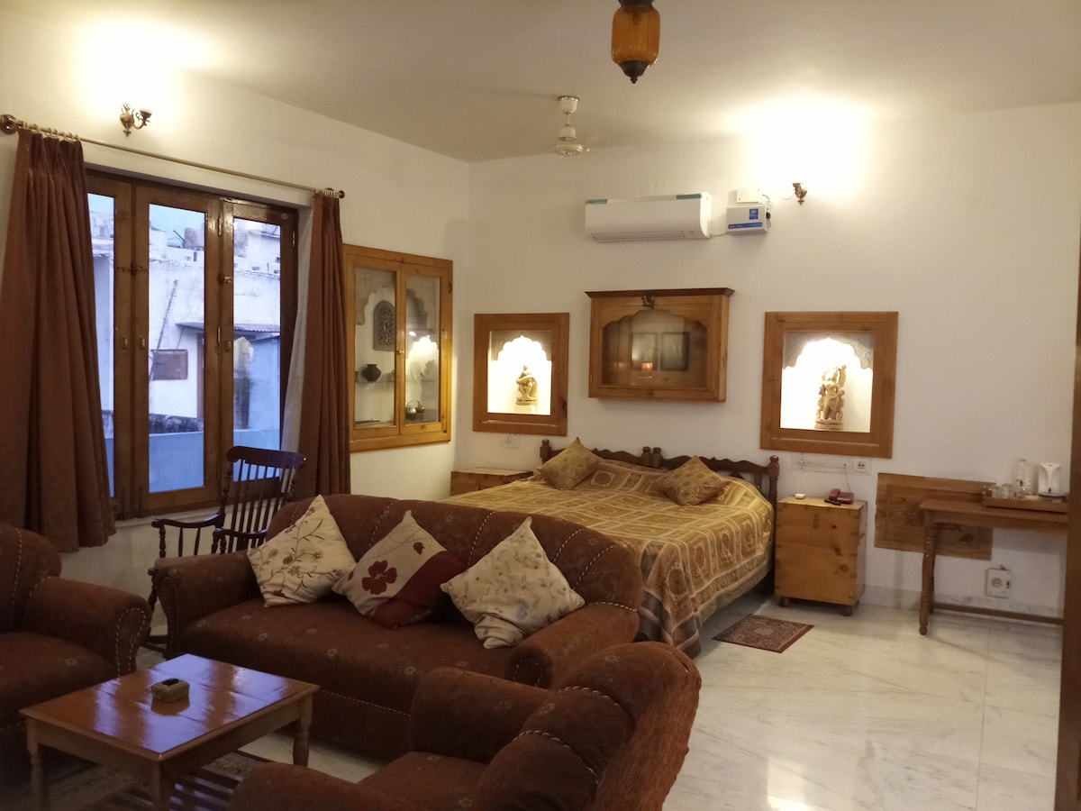 Our Family Room is thoughtfully designed to provide extra space, comfort, and convenience for families and small groups traveling together. Whether you're visiting Ajmer for a wedding, pilgrimage, vacation, or special event, this room ensures everyone stays comfortably under one roof. With generous space and elegant interiors inspired by traditional haveli architecture, the Family Room offers a warm and welcoming atmosphere combined with modern amenities.