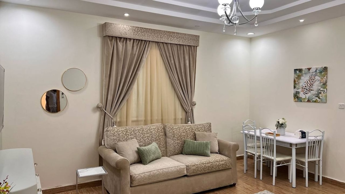 Welcome to our luxury apartment, In the heart of the Prophet's city, experience luxury and comfort at the same time, as we have provided you with an ideal mix of modern comfort, whether you are here for work or leisure, our carefully designed residence guarantees you an unforgettable stay, as it is about 4 minutes by car and 18 minutes on foot from the Prophet's Mosque, and it is also located in the heart of the city and in the middle of a main street, making it easy for guests to access all services, shopping and restaurants