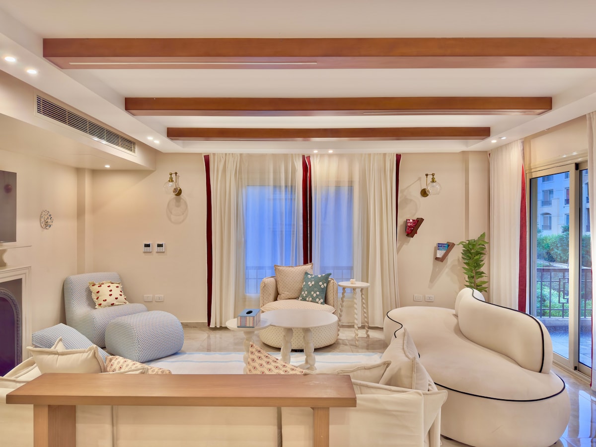 Spacious 250 sqm Apartment in a Secure Compound 🌟 Enjoy your stay in this modern, fully furnished 250 sqm apartment located inside a gated and secured compound, just 2 minutes from Mivida and Hyde Park. ✨ Highlights: • Spotlessly clean & well-maintained • Fully equipped with everything you need • High-speed Wi-Fi • Stylish, almost brand-new furniture • LG Sound Bar for an enhanced audio experience • Smart TVs connected to the internet • Hair dryer • Iron Perfect for families
