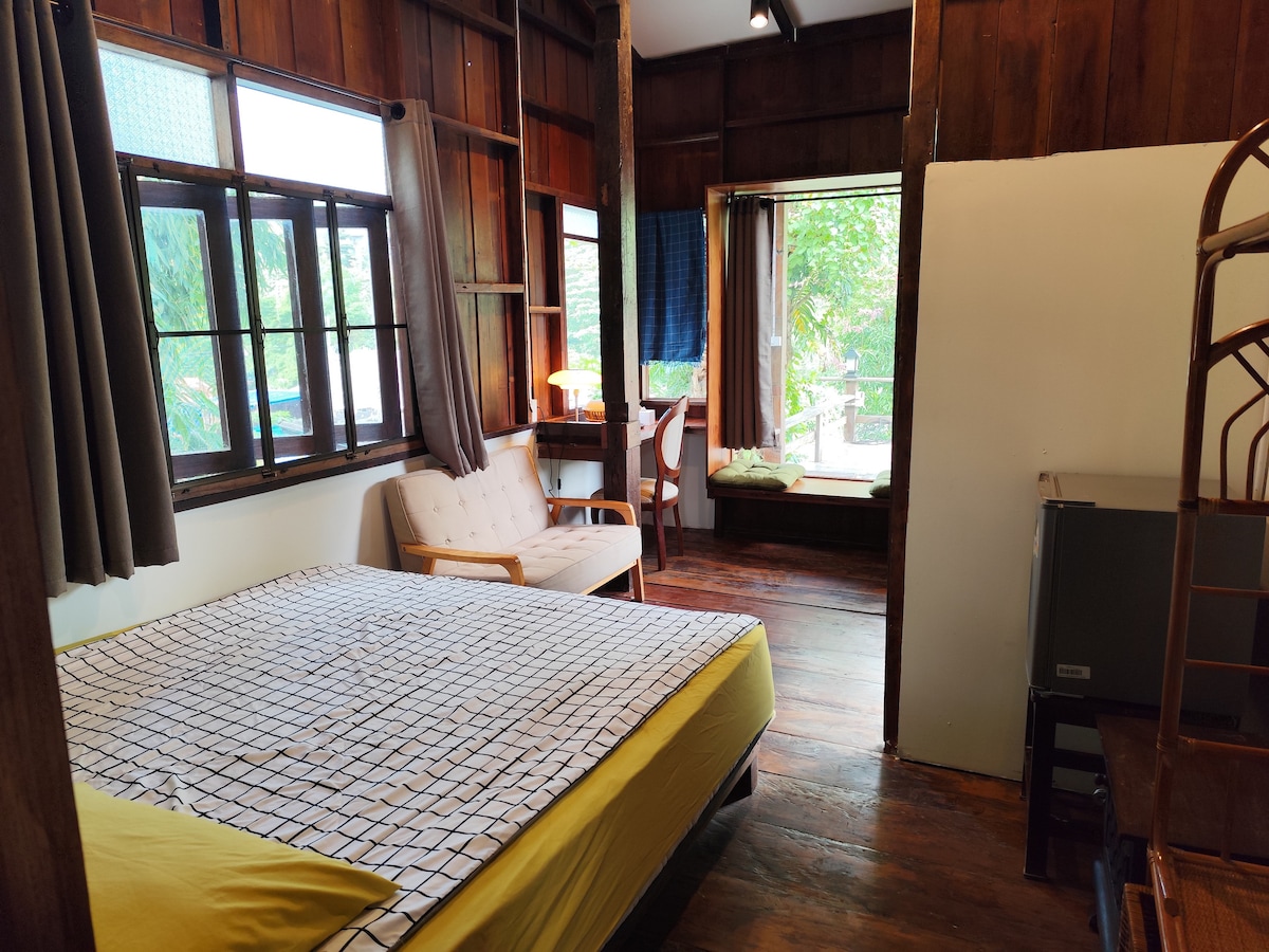 Escape to a romantic wooden Lanna rice barn–style house in Chiang Dao. Surrounded by nature and the serene beauty of Doi Luang Chiang Dao, this cozy retreat offers privacy, a private balcony with stunning mountain views, and warm campfire nights. Perfect for couples who love birdwatching, gentle walks, and quiet moments together in a peaceful countryside setting.