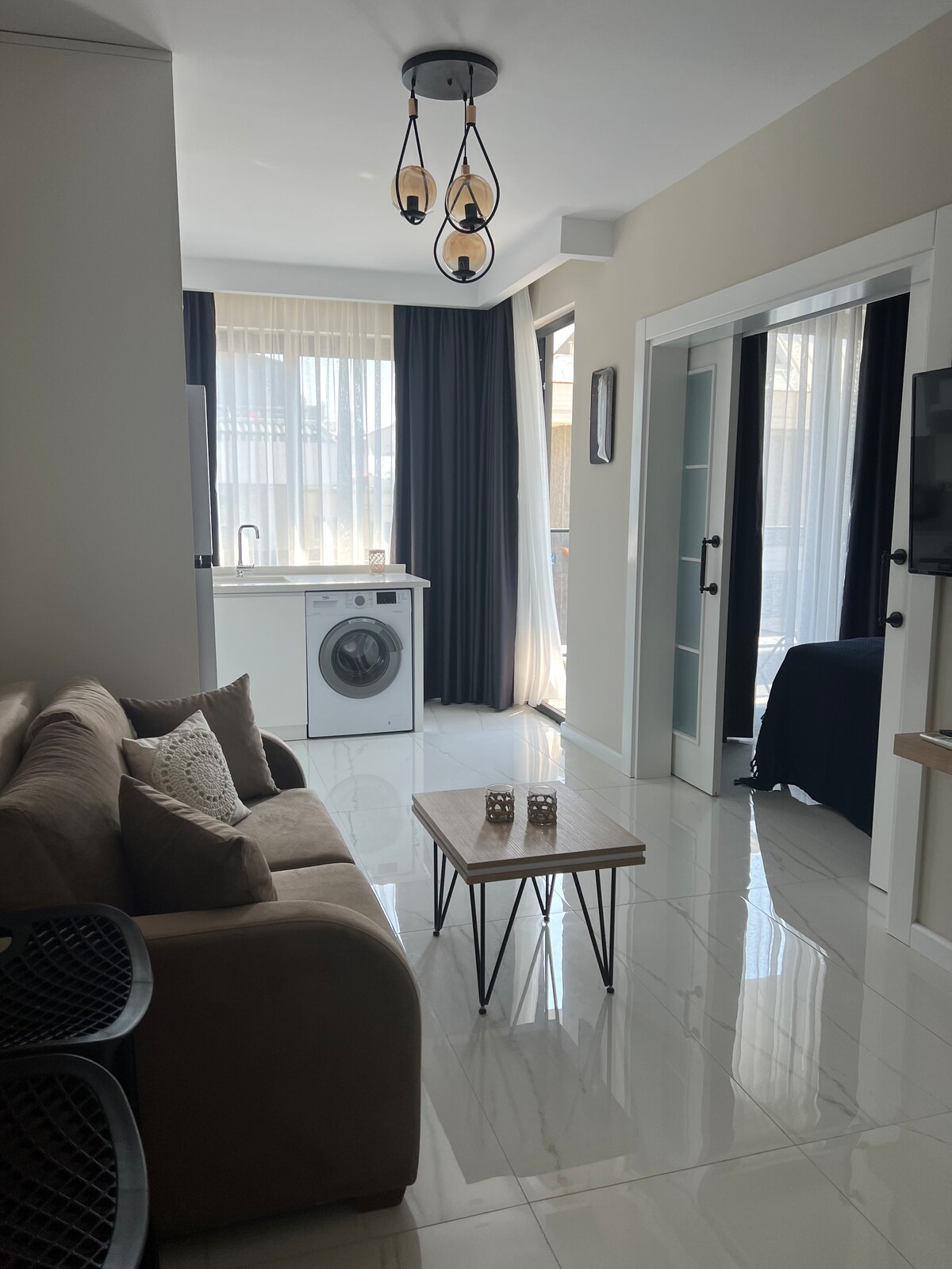 New and lovingly 1+1 furnished apartment in Alanya Mahmutlar, 1 bedroom with large double bed, 1 living room-kitchen with 2 sofa beds, fully equipped with dishwasher, oven, stove, fridge, 1 bathroom with shower, Wi-Fi with high-speed Internet, TV Samsung/Smart TV, washing machine, all rooms are fully air-conditioned. Access to the premises is closed to strangers, which provides full security for the guests.