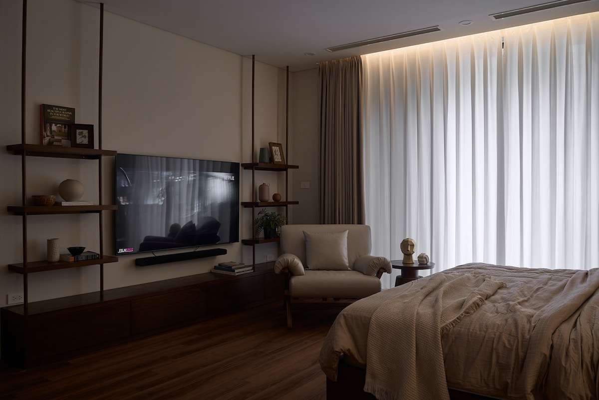 High-end apartment at Vinhomes Smart City with full amenities for couples, tourists or business travelers. Here you will rest and relax in a peaceful, luxurious space. Utilities include: 1. Indoor swimming pool 2. Outdoor swimming pool (seasonal) 3. Gym 4. Working Space 5. Shopping and entertainment at Vincom Mega Mall. 6. Check-in and take virtual photos at Japanese Garden 7. Stroll between the blue sea and white sand in the heart of Hanoi. 8. BBQ Party