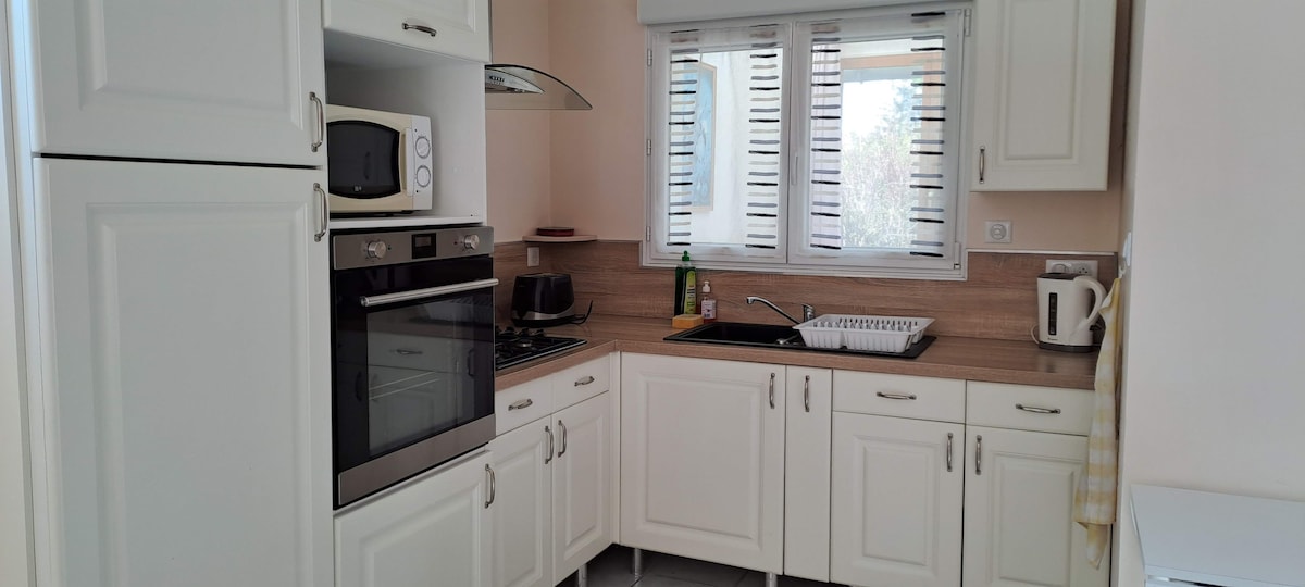 This peaceful 130 m2 house offers a relaxing 50 m2 stay for the whole family on enclosed and wooded land, at the foot of the champagne vineyards. 10 min from Vitry-le-François, 20 min from the first beaches of Lake Der, 45 min from Nigloland, 1 hour from Reims, 2 hours from Paris. 3 bedrooms, bathroom with shower and bathtub, separate toilet and 1 garage. Netflix and Disney+. Extra €3 per person for towels. The house is rented for 6 people maximum, no parties or gatherings.