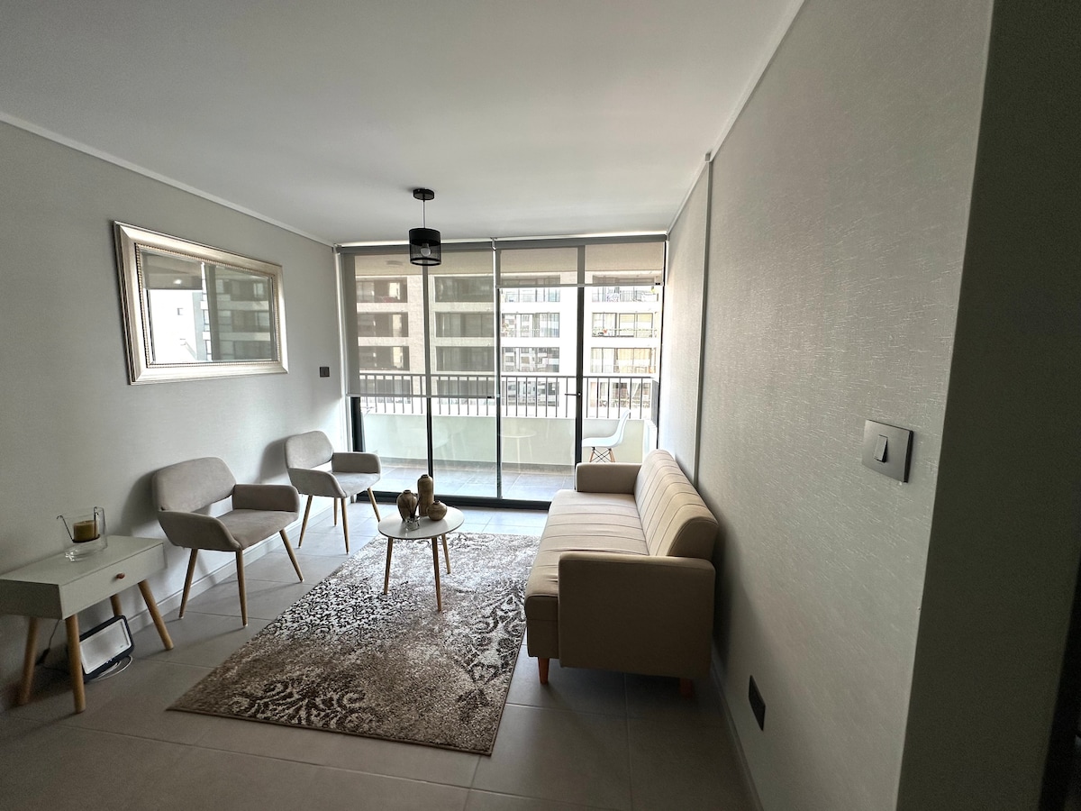 Check-in from 7:00 pm!! Have fun with the whole family in this elegant and modern accommodation. Smart lock entry 75-inch TV in the living room 55-inch TV in the bedrooms Fiber Wi-Fi 12,000 btu air conditioning. Heating in the bedrooms. Kitchen and toiletries. Vicente Valdés and Bellavista La Florida subway. Piccola Italia and several restaurants Monumental Stadium Florida Bicentennial Stadium Banks, pharmacies, supermarkets Clinics and hospitals