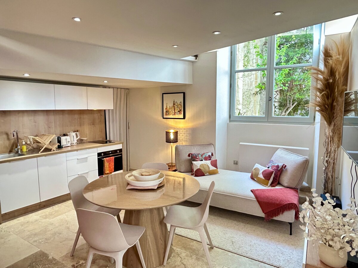 Accommodation completely renovated in 2022, 3 minutes from the Écusson (5 minutes from the Arènes, the Maison Carrée and the Jardin de la Fontaine). Equipped kitchen, 140 cm TV, internet, double bed (140/190) high density 21 cm, washing machine, Poltron & Sofa 3-seater sofa, Nespresso coffee machine. Welcome to our home! Nîmes, a Mediterranean jewel, dances between past and present. The Arenas bear witness to time, while the sunny alleys reveal an authentic charm. History breathes...