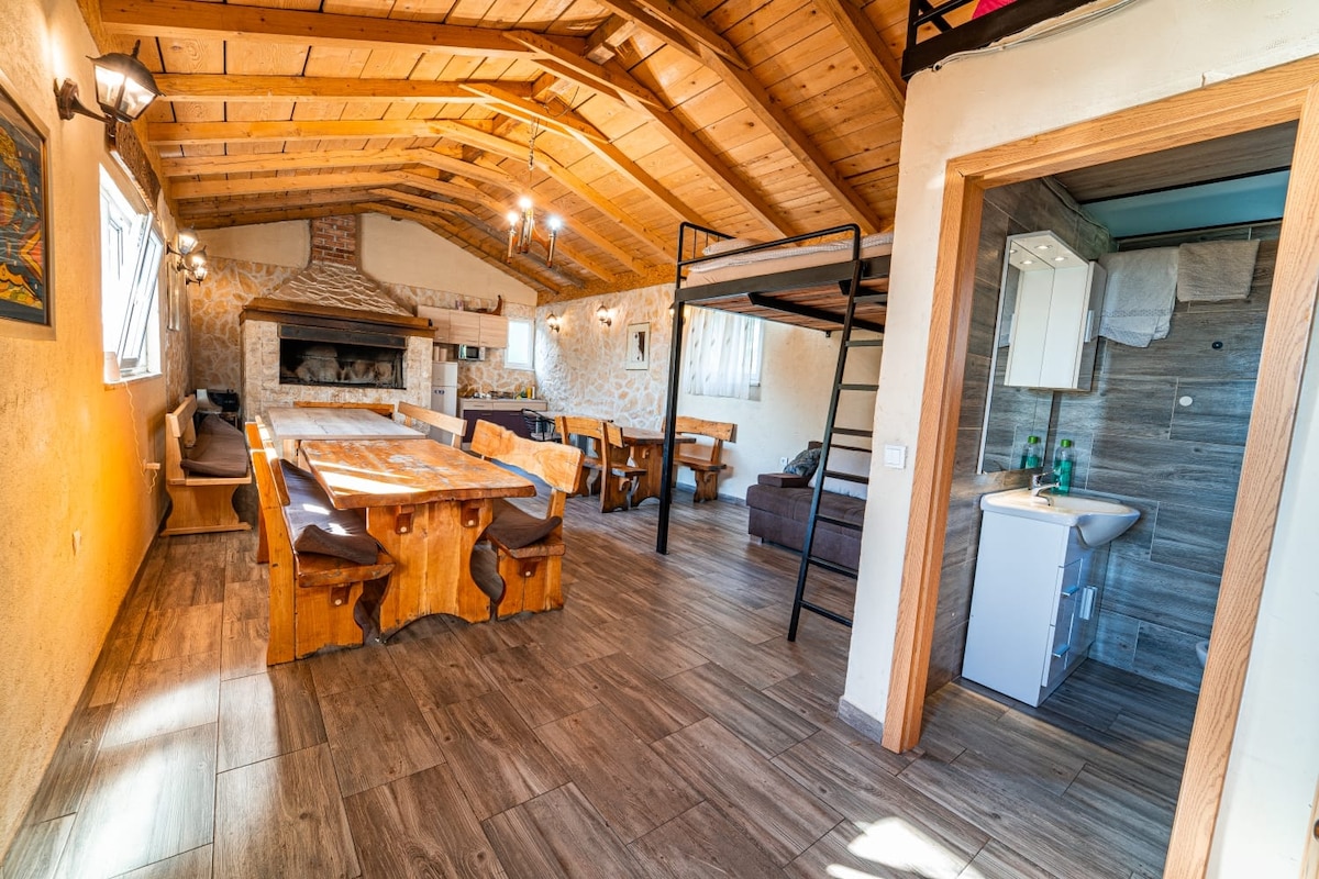 Two stone houses with a swimming pool,one house has a shower,toilet,fireplace and two large tables for those seeking a vacation in nature.Locate on south slopes of Mt. Kozjak, 8km from Split , Adriatic sea and islands.The location gives you a sense of intimacy.
