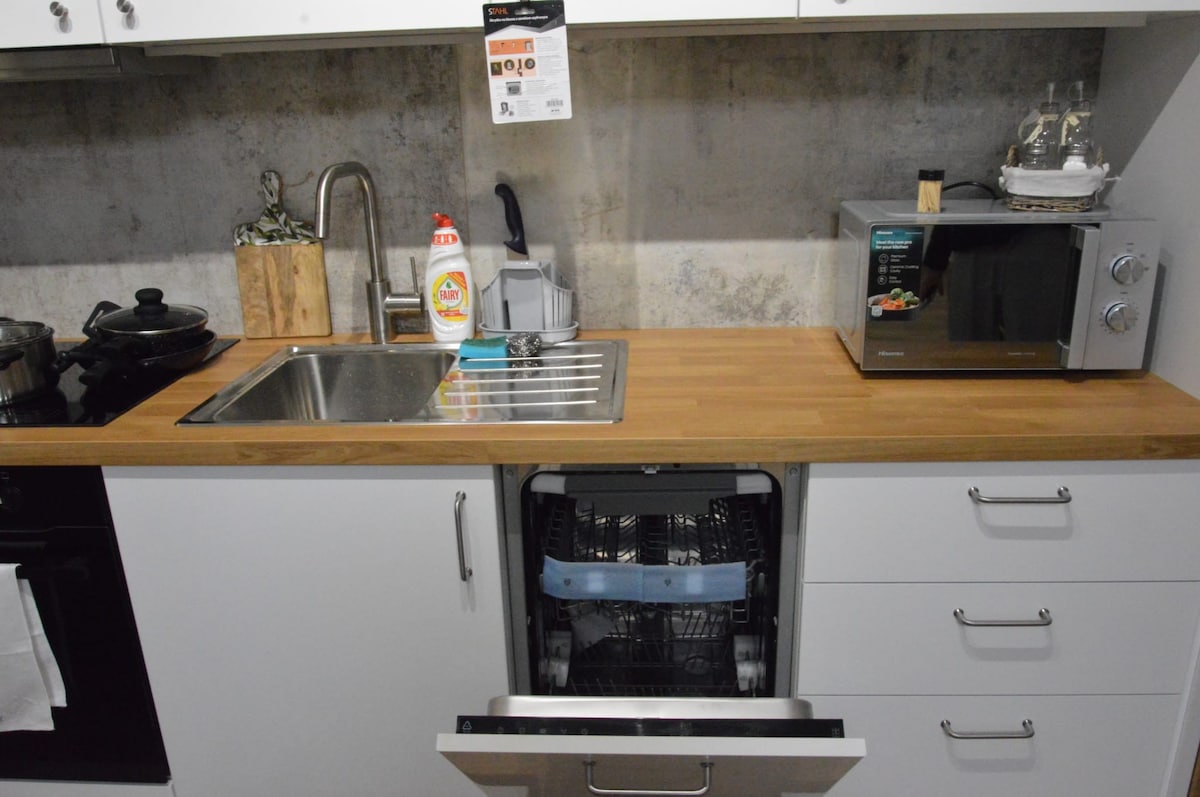 Beautiful, bright and spacious apartment finished to a very high standard. Guests have access to high-speed internet, as well as a 65-inch QLED 4K Smart TV and PlayStation 4, board games, a mini library and desks with comfortable chairs. The fully equipped kitchen offers a dishwasher, an express coffee and tea station, as well as all the necessary cooking accessories. A washing machine and dryer also provide comfort during longer stays.