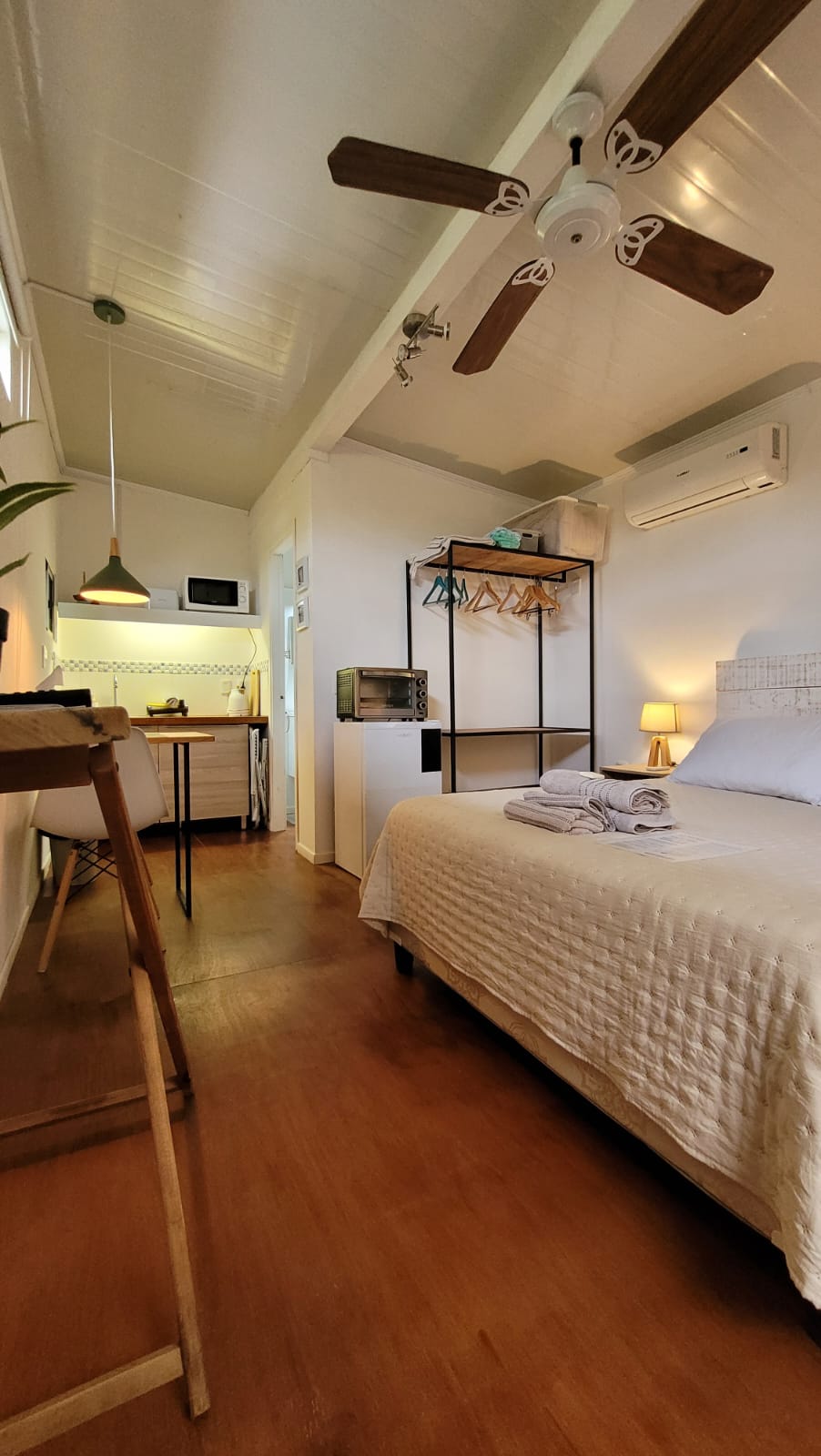 Annex apartment; independent. Kitchen equipped for 3, fridge with freezer, blender, sandwich maker, electric toaster and coffee maker. Bright bedroom with comfort for 3, 150x190 sommier, cold heat air equipment, private bathroom with hygienic shower and shower. The place has a mini component, hair dryer. The apartment is located a few blocks from the Mansa Beach of Jose Ignacio, and steps from the leading restaurants in the area such as La Olada or La Juana.