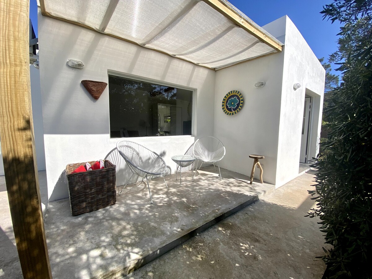 We invite you to enjoy and rest with your partner, family or friends in a green, quiet environment, near one of the most beautiful beaches and a few minutes from all the nightlife, restaurants and services of Maldonado and Punta del Este. Comfortable and modern 50m2 guest house, fully recycled. 5 min walk (450 m) to Mansa beach, stop 35. Barrio Pinares, one of the nicest neighborhoods. Montevideo bus 450m, local bus 100m (10' Maldonado, 15' Punta del Este). Shops 1200m.