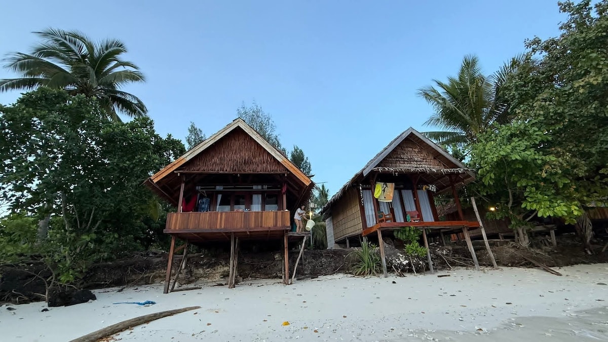 *Please take your time to read the listing details and description* FOR JULY-AUGUST (WE ARE CLOSED) However please reach out for possibilities One person stay between high season October - January must pay 2 guests price •This is Alfred wallace bungalow listing• There are only two bungalows. With Permaculture garden, private beach, protected house reef and freediving spot.