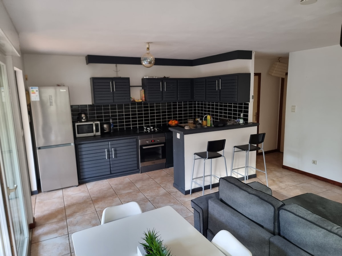 Apartment in a private property. Quiet, spacious and functional. Fitted and equipped kitchen for your stay. Bright and ventilated living space. Air-conditioned room.