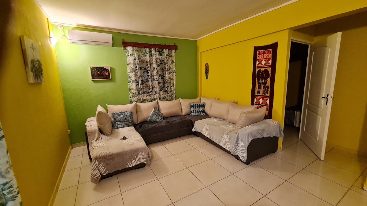 Dans un quartier calme situé à 5 min à pied de l'aéroport, Le Madina une maison typique du charme Mahorais, propose 4 chambres tout confort avec TV connectée. Aussi, venez profiter en famille, entre amis ou collègues de ce beau logement qui offre d'agréables moments en perspective ! N.B. : Possibilité de louer des couchages supplémentaires et des lits bébés. N'hésitez pas à nous envoyer un message si vous souhaitez recevoir des informations complémentaires ;-)