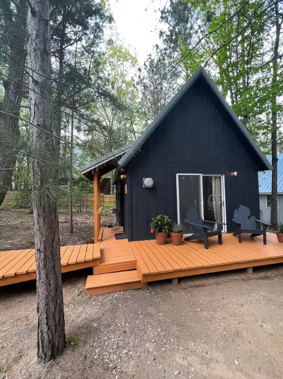 Enjoy the coziness of a bygone era while staying in this 1940s quaint, storybook log cabin. The Hawks Nest has been lovingly restored to its original glory while having all the modern-day amenities woven through its clean 380 sq. ft. space. Retreat to the spacious covered porch to relax and view the acre-and-half property leading down to 100ft of 6Mile Lake frontage. Star gaze while relaxing in the comfortable, Amish-built gilding chairs around the spacious, paver fire pit area .