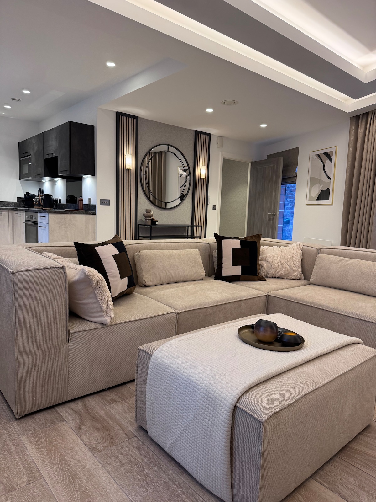 This 5★ Executive Suite has everything you need to feel completely at home during your stay. Thoughtfully designed with elevated modern finishes and elegant furnishings, the space offers a peaceful sanctuary in the heart of the city. Large windows and carefully curated interiors create a calm and welcoming atmosphere, perfect for unwinding after a busy day exploring Manchester or attending meetings nearby.
