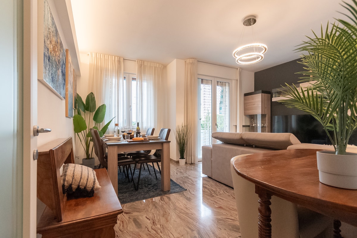 Modern and quiet 140sqm Loft surrounded by greenery in Porta Portello. Double bedroom with walk-in closet and private bathroom, dining room, living room with open kitchen, second bathroom. Large loft (40sqm) with double bed, sofa / bed and office. Underfloor heating and air conditioning throughout the house. Strategic location for the center (10 min walk), Fair, Hospitals, University and 10 minutes walk from the station. Ideal for business trips, tourism and couples