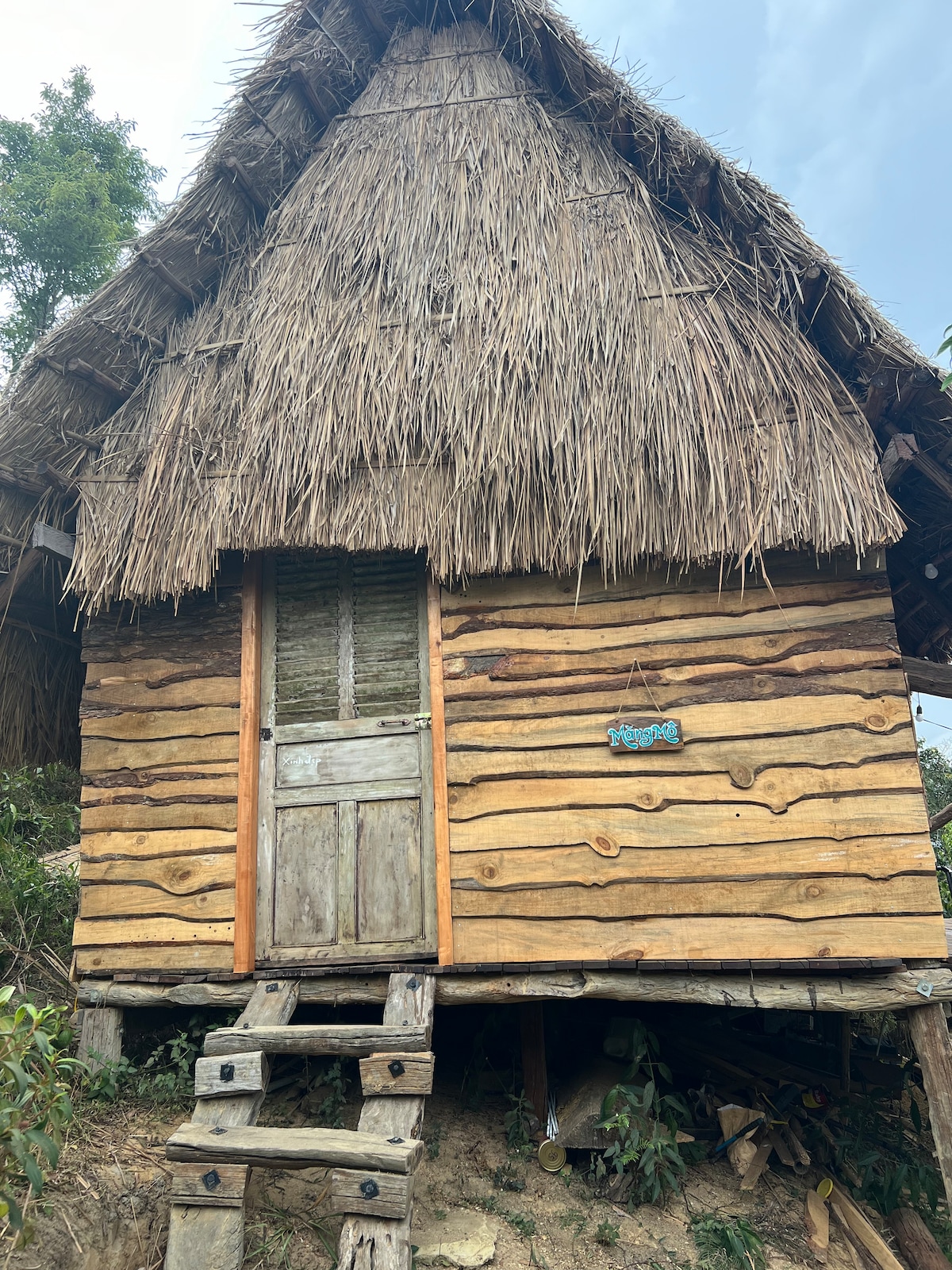 Our wooden house is located in Kon Vong Kia village, built in the traditional Mơ Nâm style. From here, you can see the beautiful hanging bridge and terraced rice fields. The house also serves as a small library for the children in the village. To get there, you’ll walk up a hill and find two cozy homes surrounded by forest. In the evening, you can gather around a fire, stargaze, and watch fireflies.