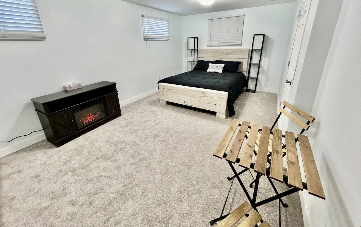 You won't want to leave this peice of paradise, surrounded by a beautiful oasis of greenery. Enjoy your own private space with an attached bathroom, with a walkway to a patio with an outdoor firepit where you can enjoy the peaceful evenings. After a comfortable night sleep in a king size bed, start your day right with a hot coffee and the peaceful small town feel. Also available upon request is an air mattress for children staying with guests.