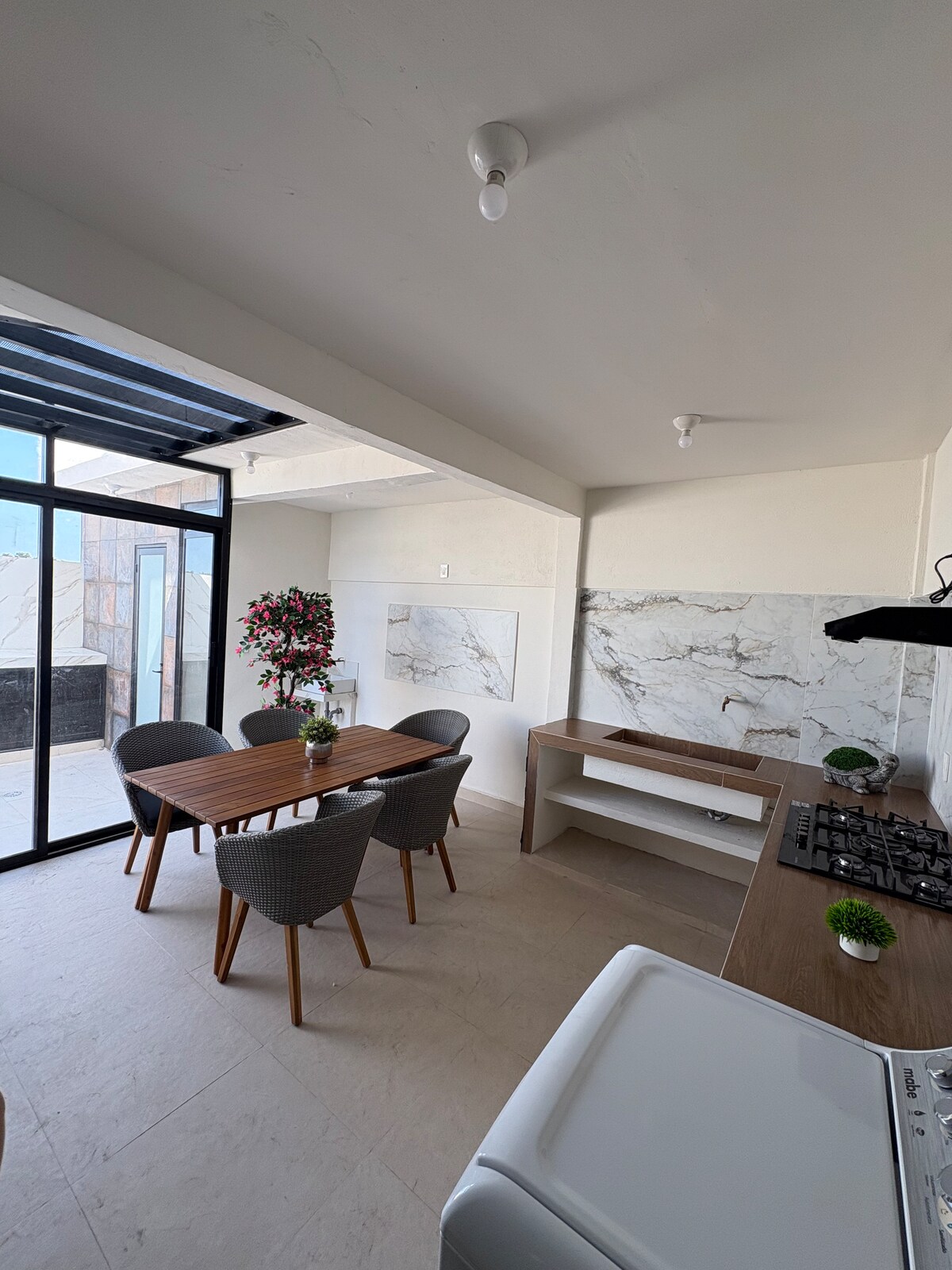 Family getaway, pet-friendly, with a private garden and pool. Beach is just 200 steps away. 3 bedrooms, 2.5 bathrooms and kitchen with spacious living room, ready for you to enjoy with your loved ones. Beach club, and Oxxo convenience store within the complex. 10 minutes from Plaza El Dorado and 20 minutes from Boca del Río. Perfect for relaxing and enjoying quality time with your family. Privacy, comfort, and unforgettable memories with your pets in a family-friendly and safe environment.