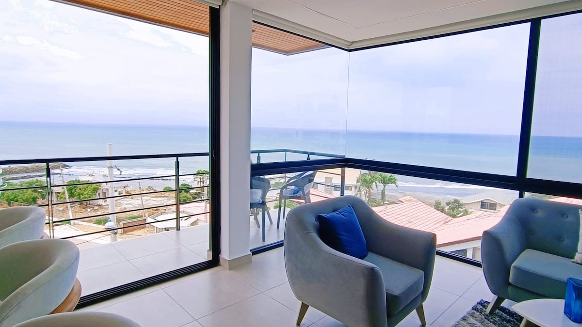 Amplio Duplex PentHouse de 320 mt2 en urbanización exclusiva, espectacular vista, gran terraza, jacuzzi, habitaciones al mar, 3 baños completos, aire acondicionado, cocina full equipada, internet por fibra óptica. Único alojamiento por su diseño, ubicación , seguridad 24h. Por políticas de seguridad, el uso de las instalaciones, club y acceso a la playa al momento NO están disponibles para huéspedes de estadías cortas.
