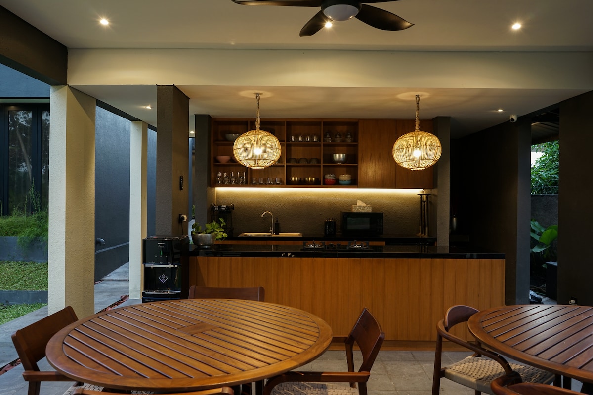 Casalista House: Modern Oasis in the City Kamar 1 (lantai 1): 2 kasur ukuran 140x200 (muat 4 orang) Kamar 2 (lantai 2): 1 kasur ukuran 200x200 (muat 2 orang) Kamar 3 (lantai 2): 1 kasur ukuran 140x200 (muat 2 orang) Escape to our stunning 2-story minimalist home, nestled in a quiet gated community. Our beautiful garden creates a fresh and peaceful atmosphere, making it an ideal retreat for families, friends, and couples.