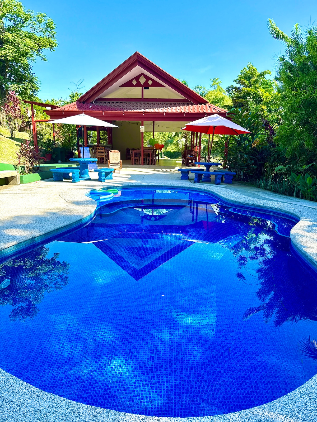 - Located in the heart of Manuel Antonio -Nestled in the jungle where you can see monkeys, scarlet macaws & toucans while chilling in a hammock on the patio -Prime location within walking distance to supermarkets, restaurants, shops, bus stop, spa/yoga studio, & a quick 5 mins drive to the national park & beaches! -Relaxing above ground pool, AC, high speed internet, smart TV, free IP tv, 2 parking spots, kitchen, gigantic patio, indoor & outdoor dining hammocks, yoga mats & washer/dryer