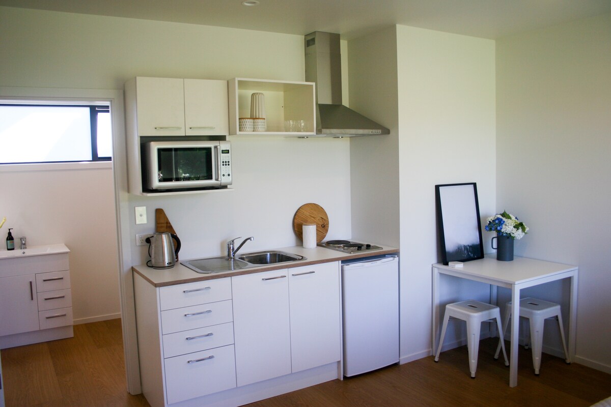 Kick back and relax in this calm, stylish space. One bedroom separate guesthouse. Situated on the outskirts of Gisborne (5 min drive to the centre of town). Private, quiet, modern and relaxing. Nespresso coffee and breakfast (muesli, weetbix, vogels and spreads) provided.