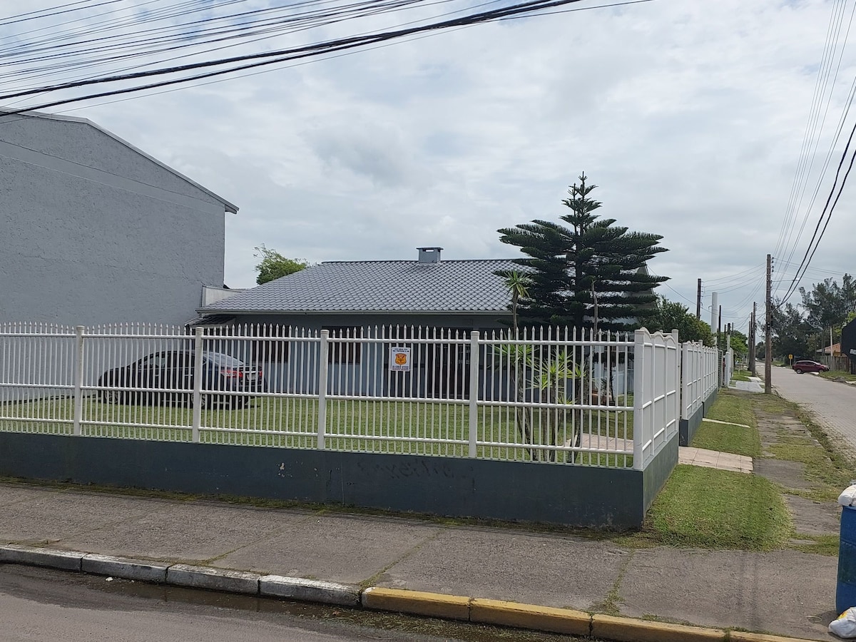Bem vindos ao nosso paraíso! Localização privilegiada! Apenas 4 quadras de uma das melhores praias RS Todo conforto que sua família merece. 2suítes e mais 2dormt c ar cond muito bem arejados. obs: Um quarto casal s/ar com banho social no térreo Fornecemos roupas de cama e banho,cadeiras de praia c carrinho ,guarda sol peças amplas, sala de jantar e estar, área gourmet ,churrasqueira e acessórios,garagem coberta Tv a Cabo wi-fi Cerca elétrica grades protetoras em todas as aberturas no terreo
