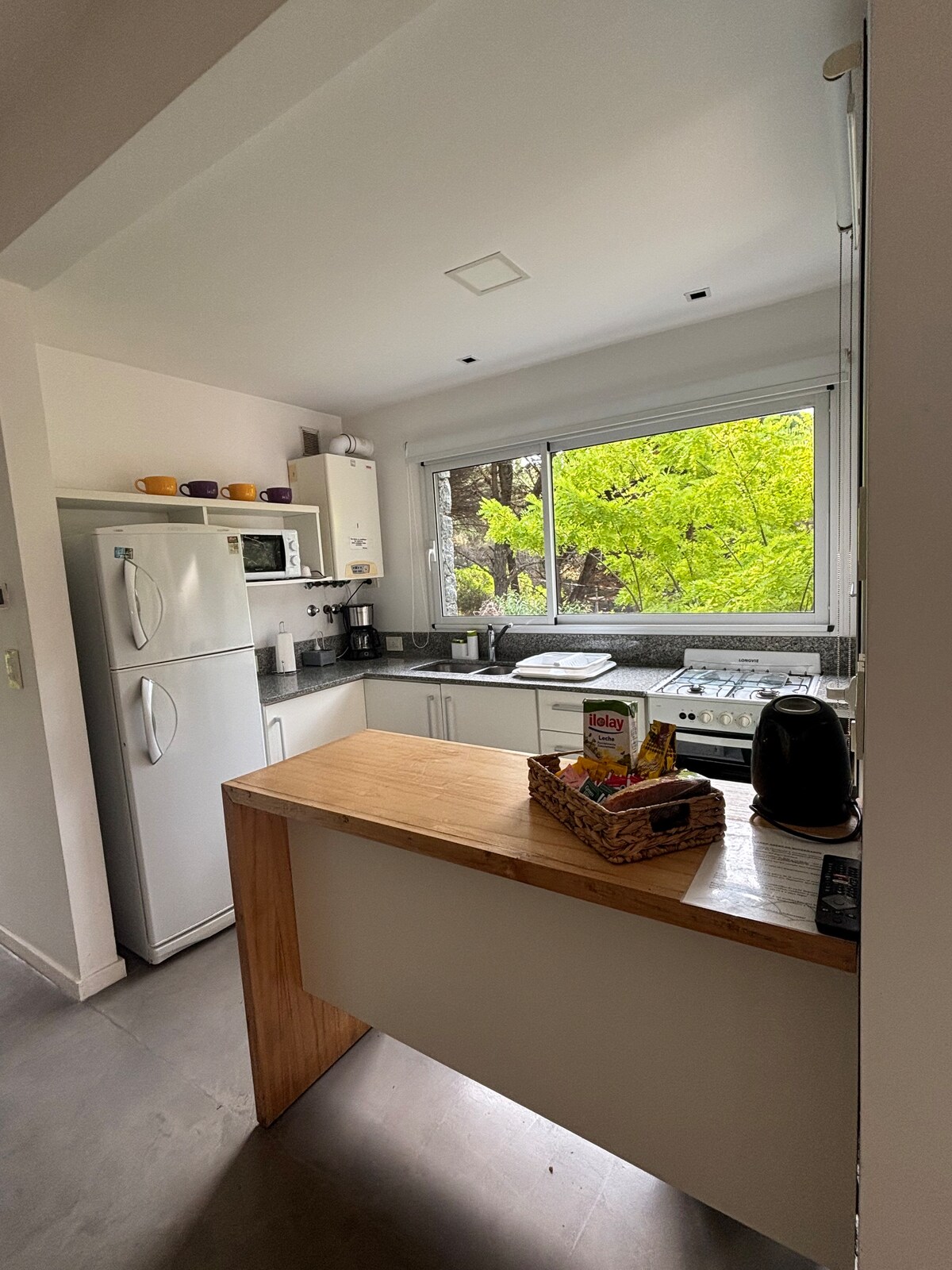 Sumérgete en la tranquilidad de nuestra acogedora casa, situada a pocas cuadras de la playa y del centro. Rodeada de encantadores bosques con calles de arena, es el refugio perfecto para desconectar y disfrutar de la naturaleza. ¡Reserva tu estadía y vive una experiencia inolvidable! PB: Sala de estar con sillón cama, cocina con electrodomésticos y vajilla, toilette con ducha, jardín + parrilla. PA: Habitación con terraza + living, baño completo. Ropa blanca. Limpieza 1 vez por semana.