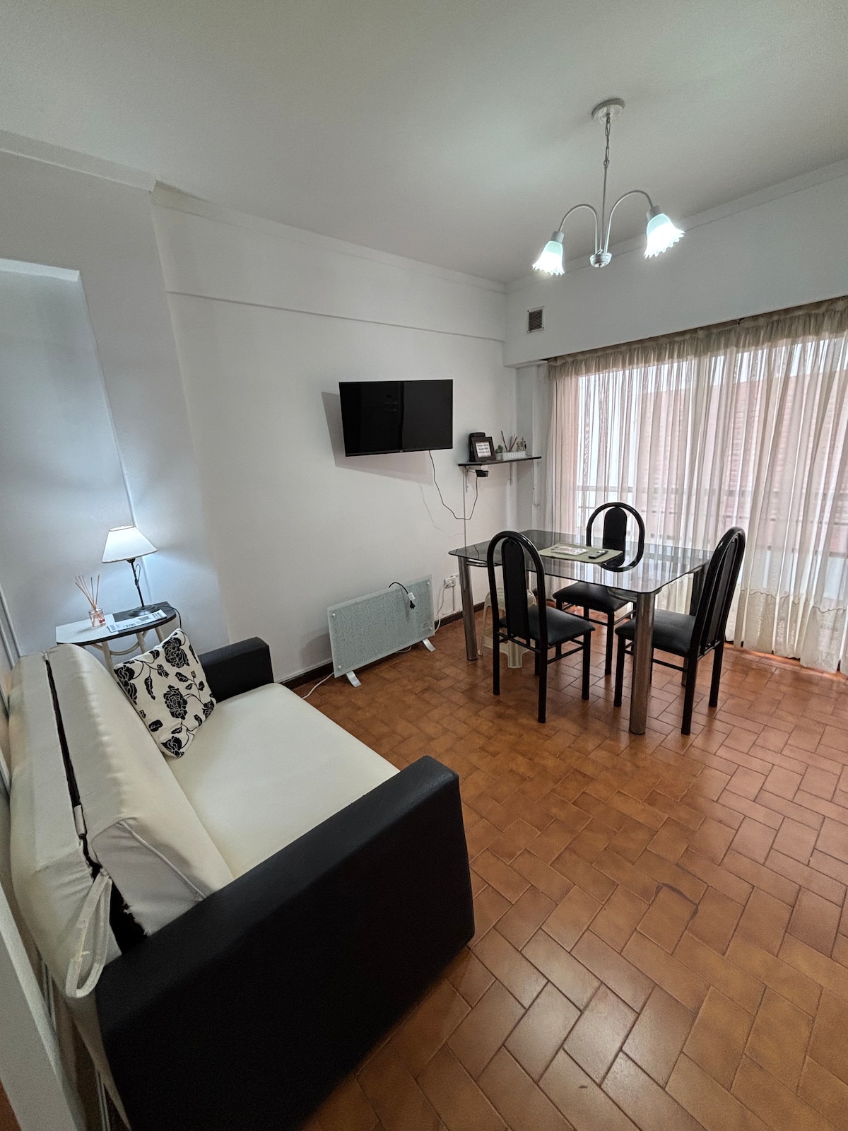 Keep it simple at this peaceful and centrally-located place. It has a balcony facing the street. It is located half a block from Avenida Colon, 1 block from Plaza Mitre and 7 minutes from the beach. With taxi and bus stops 20 meters away and all kinds of shops nearby. The apartment has a separate and fully equipped kitchen and in the living room there is a table, a 43" smart TV and a comfortable armchair. The room is equipped with a brand new 2-seater sofa bed.