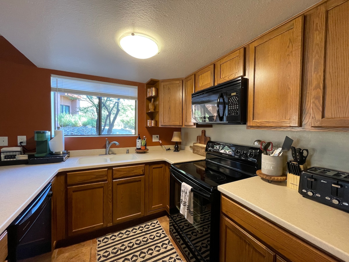Bright and charming centrally located cozy house. The home features fire place, large window, southwestern furnishing and decor throughout. It comes with all the amenities to make your stay comfortable: Fully equipped kitchen, stove, oven, microwave, dishwasher, refrigerator, dining area, private bathroom, office desk, TV, Cable, Wifi, safe, covered parking, washer & dryer, Queen size bed, Double size bed plus a couch in the living room, covered patio area & back yard.
