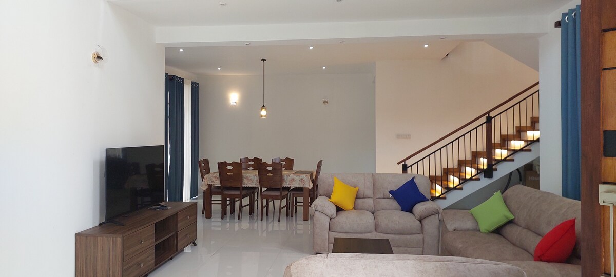 Relax with the whole family at this beautifully designed modern and peaceful home. Situated just 5 mins away from the International Airport and 20 mins away from the Negombo beach. Enjoy the hotels , restaurants and supermarkets close by. Easy access to Colombo city via the expressway conveniently located 2 mins away from your home. Situated within a gated community with 24hrs security.