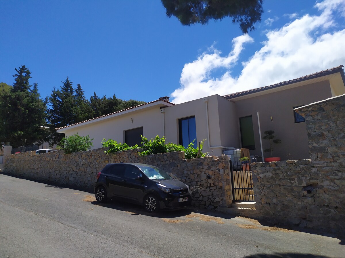 Beautiful villa with garden (children's corner), and secure pool with bar cover. Air conditioning Large living room Fully-equipped kitchen 3 bedrooms, double bed in each bedroom with storage 1 bathroom with bathtub Garage with washing machine 3 parking spaces Outdoor dining area BBQ grill 20 minutes from the sea, and 1 hour from Spain. 15 minutes from Les Grands Buffets restaurant and Les Halles in Narbonne 10 mins from Somail 45 minutes from the city of Carcassonne