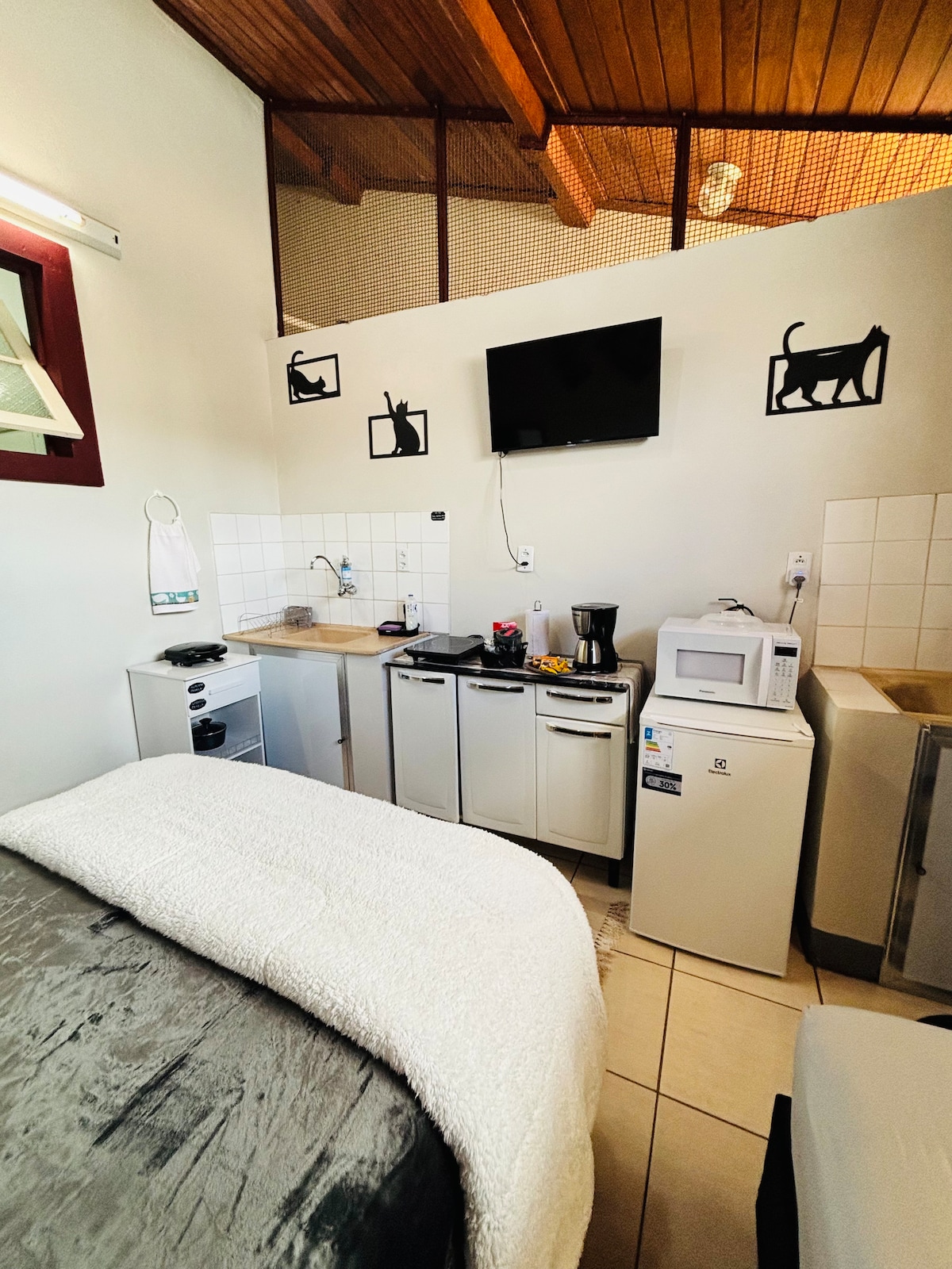 Charming studio, not shared, located next to the main house, with independent entrance! Street with flow of vehicles and pedestrians, quiet and safe neighborhood. 2 km from the Historic Center, 3 min from bakery, restaurant, snack bar, bar and 5 min from supermarket, pharmacy, shops and bus stop. We offer bed/bath linen, microwave, minibar, mixer, coffee maker, induction stove. It accommodates up to 3 guests, with a double bed and a single bed.