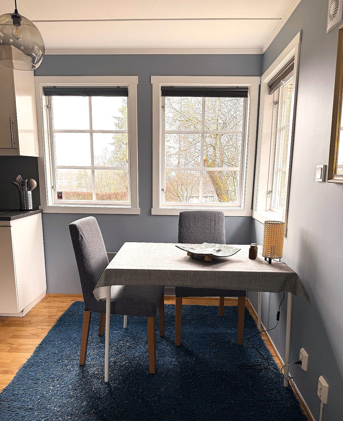 Sit back and relax in this quiet, elegant place. When you enter the door, you are in the living room. With private balcony and fireplace. A sofa and a queen size bed. Take the stairs down to get to the kitchen and bathroom. The kitchen counter is quite small, but it has an induction top and oven. The apartment is suitable for one to two people who want to be close to hiking terrain and ski slopes. Nice starting point for trips in nature. At the same time only 30 minutes from Oslo city center with museums and restaurants.