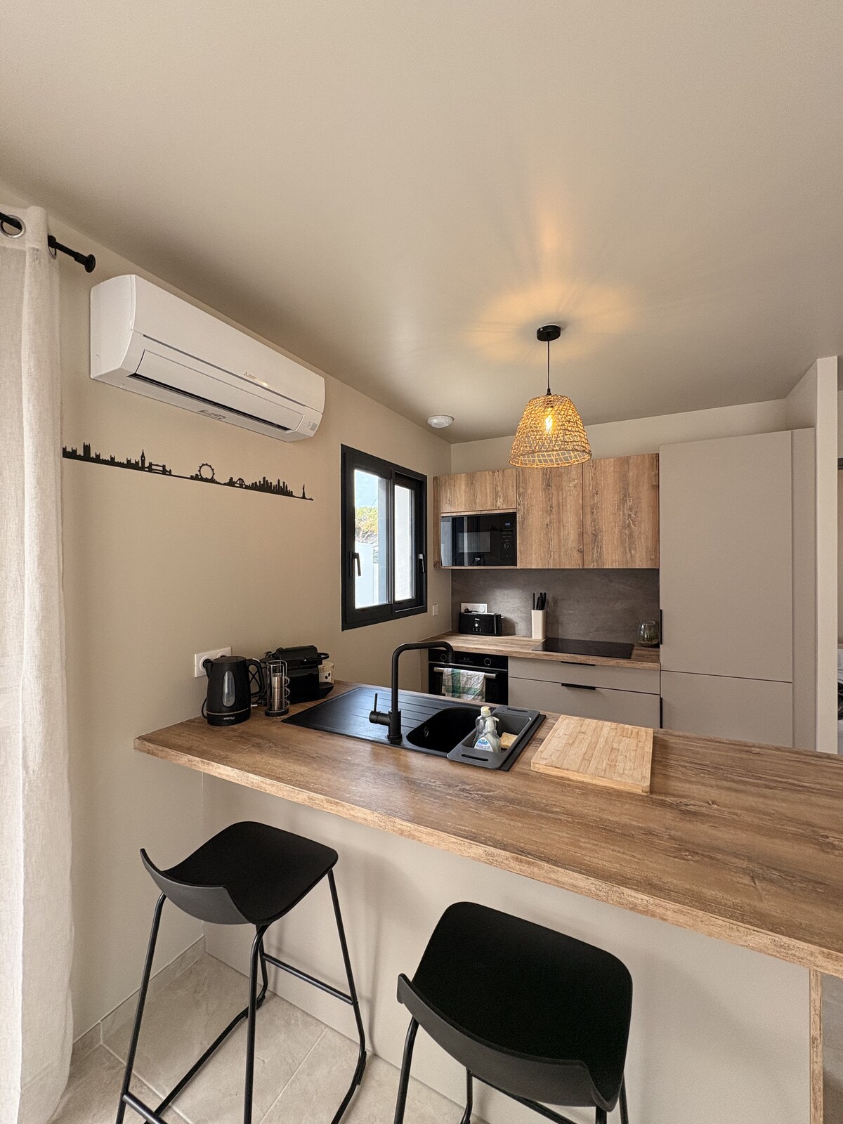 Escape to the breathtaking Blue Coast and experience Provence in a studio thoughtfully designed by architect owners. Wake up to stunning hill & sea views from your private terrace and enjoy all the modern comforts. Walk to the sandy beach and explore the coves with a complimentary sea kayak. Conveniently located 10 minutes from the local train station and 25 minutes from Marseille airport with free parking. An unforgettable adventure awaits on the Blue Coast of Provence!