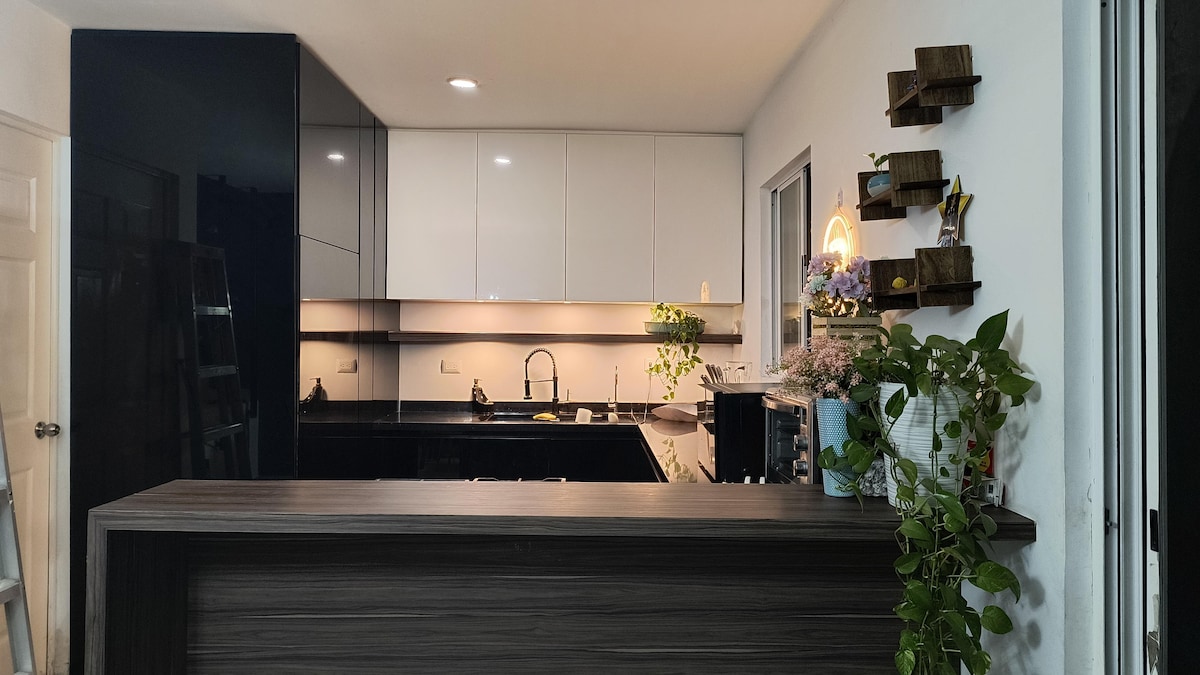 Have fun with the whole family at this stylish place to stay. Choose between 2 pools, relax on orthopaedic mattresses in air-conditioned areas while watching TV, listen to music while cooking/washing and wake up with coffee to start your day well. Everything while feeling safe: vigilantes and cameras 24/7. Parking techado, HEB crossing the street, 7 minutes from Paseo la Fé and 20 minutes from the airport.