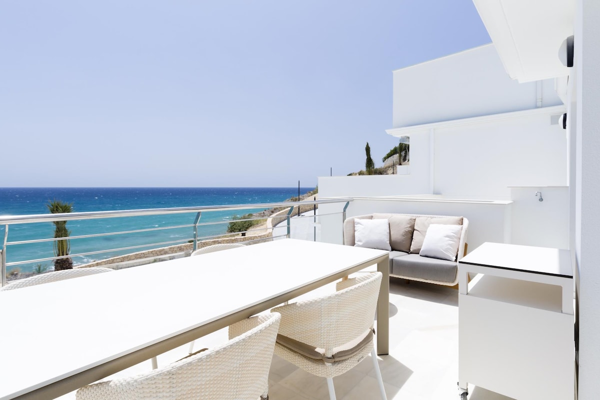 Welcome to Horizonte Azul, a cozy nest with astonishing views over the sea and the spectacular cliffs of the Moraig cove. Located in a pretty residential area, your two stylish rooms have individual entrances and are connected through a beautiful bathroom. On your private shaded terrace, an outdoor table and furniture w/sink allows you to prepare breakfast or cold bites. Activities? Book a private Pilates lesson on site, or enjoy hiking and other sports close by. We look forward to you staying!